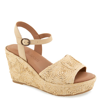 Step into effortless charm with the NEVIO wedge sandal by Gentle Souls. Its beautifully textured floral-inspired design adds artisanal detail, while the soft ankle strap keeps your stride secure. Elevated on a lightweight wedge with plush cushioning, Step into effortless charm with the NEVIO wedge sandal by Gentle Souls. Its beautifully textured floral-inspired design