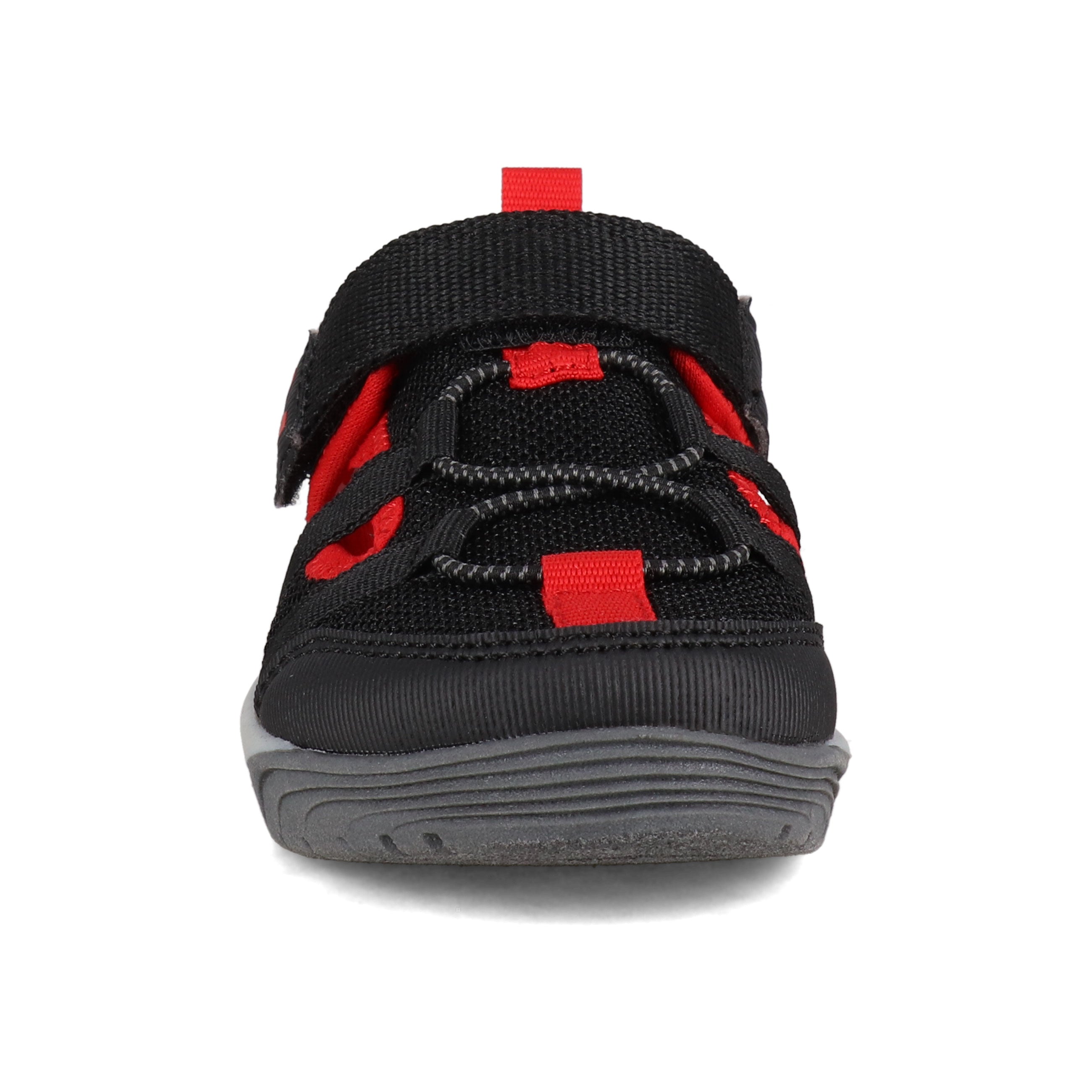 This shoe is ready for summer adventure with its durable materials and quick-dry lining. The alternative closure offers a foot-hugging fit and enables them to easily get it on and off all by themselves. The flexible outsole gives extra grip for a little extra safety as they explore.