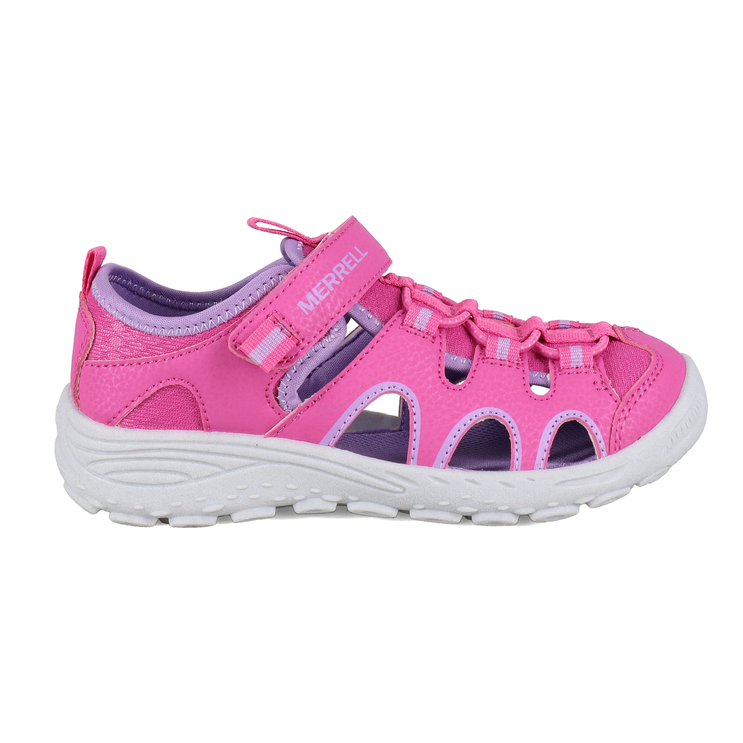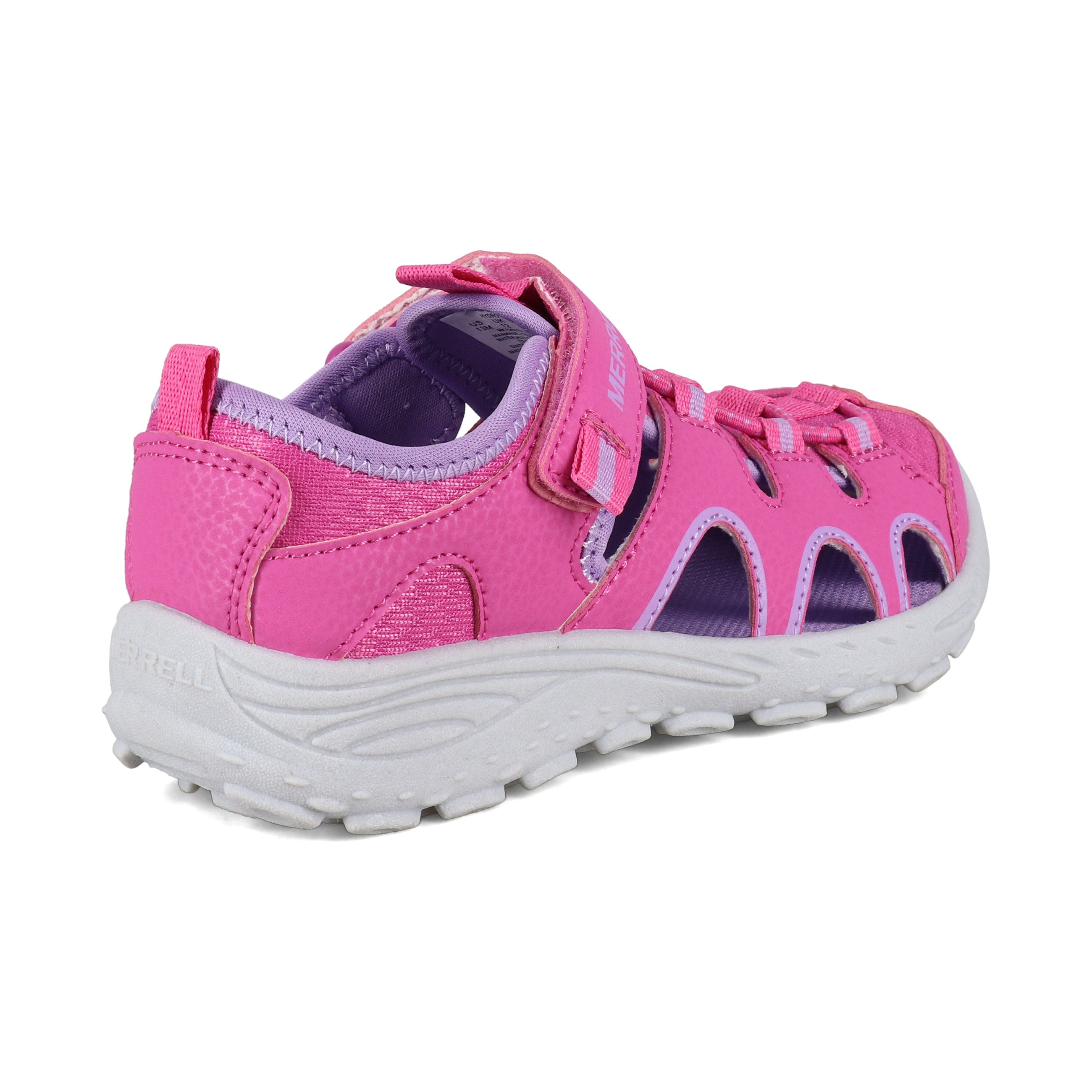 This shoe is ready for summer adventure with its durable materials and quick-dry lining. The alternative closure offers a foot-hugging fit and enables them to easily get it on and off all by themselves. The flexible outsole gives extra grip for a little extra safety as they explore.